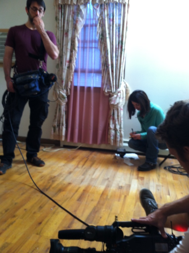 With Michael, Ella the director and camera crew during a lunch break from filming.