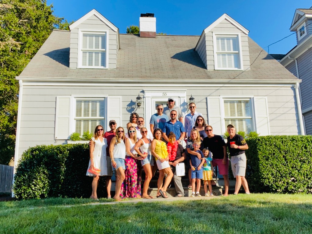 Our dear neighbor, Linda, (pictured above center with the orange lei), has lived on our street since 1995. She has seen many neighbors come and go.