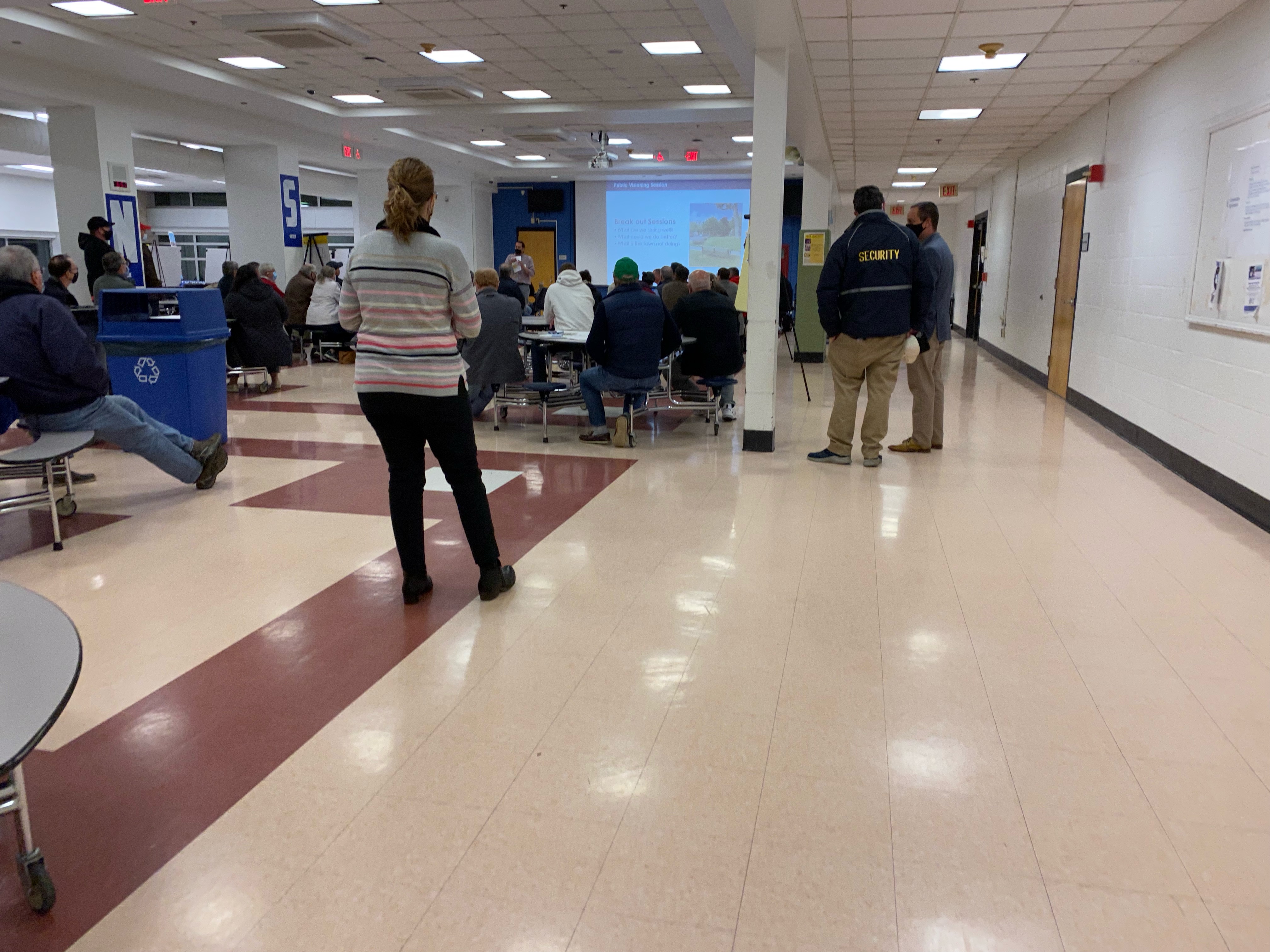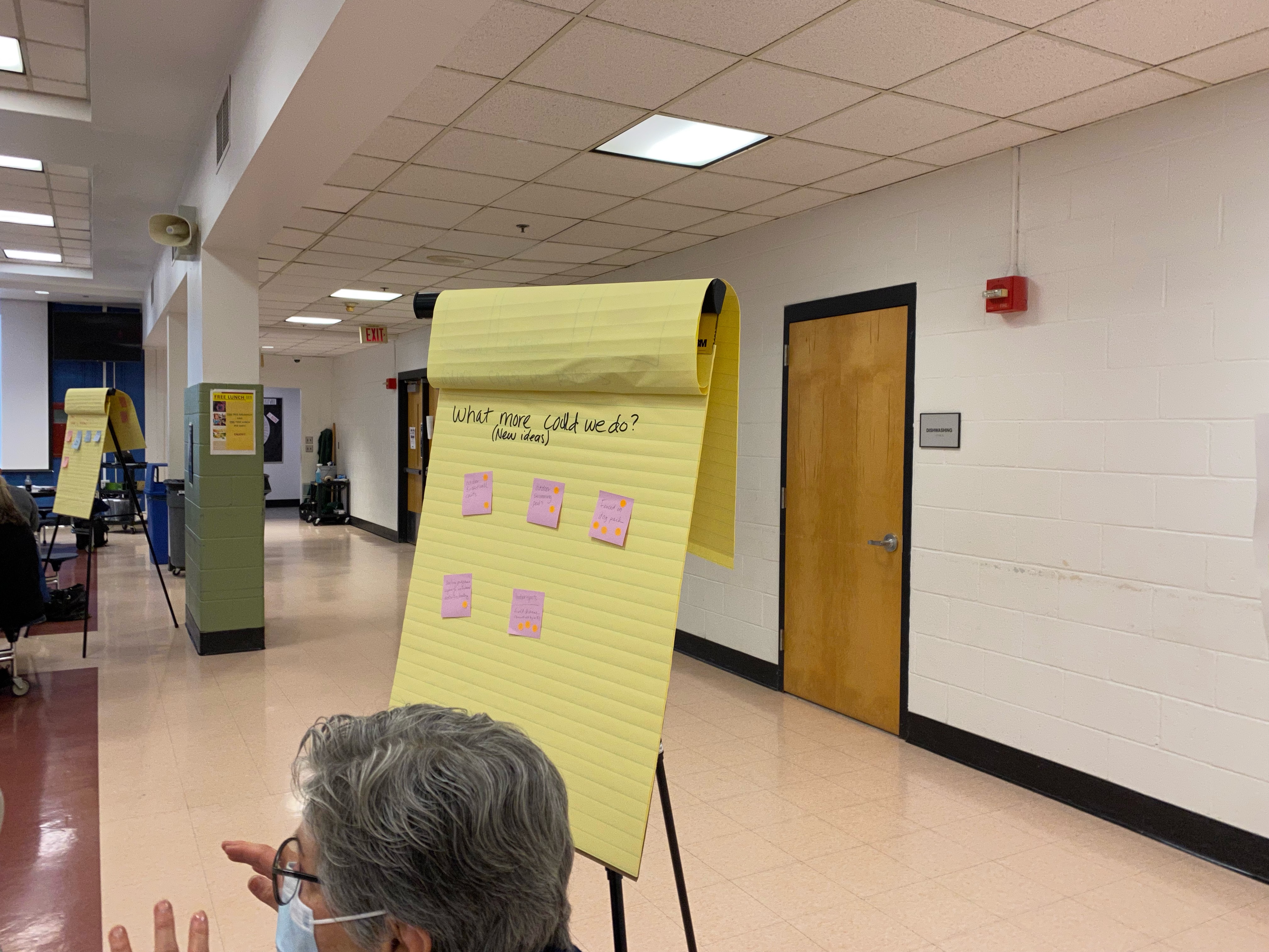 The meeting, facilitated by a professional team, had participants break into small groups to discuss and tally responses. Each small group discussion was led by a facilitating team member, and each small group shared their input with the full participation at the end of the meeting.