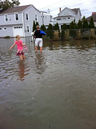 I’m sure I’m not alone in missing the feeling of safety and normalcy we knew before Sandy hit. The loss of that state of calm is captured in the stark difference between the two photos. The first picture was taken about two weeks ago on the bridge from Sasco Hill Road to Harbor Road and the second at the stop sign between Reef Road and Oldfield on Halloween.